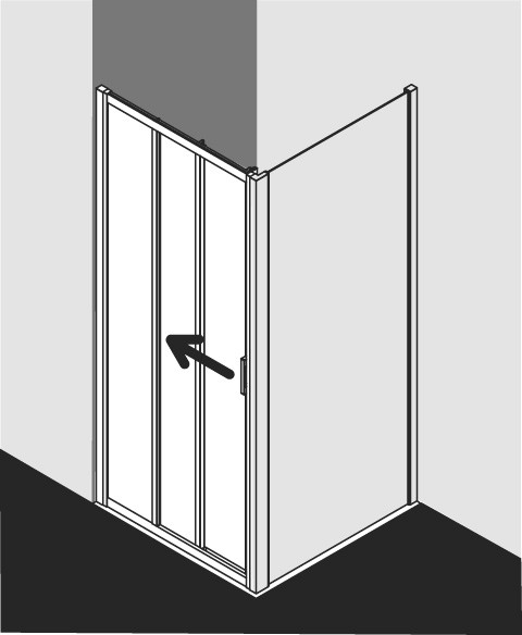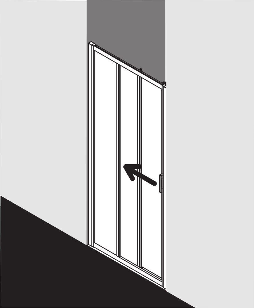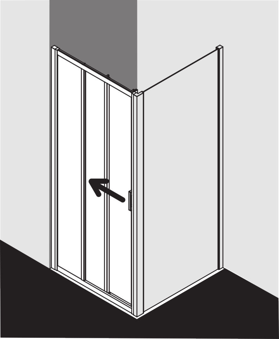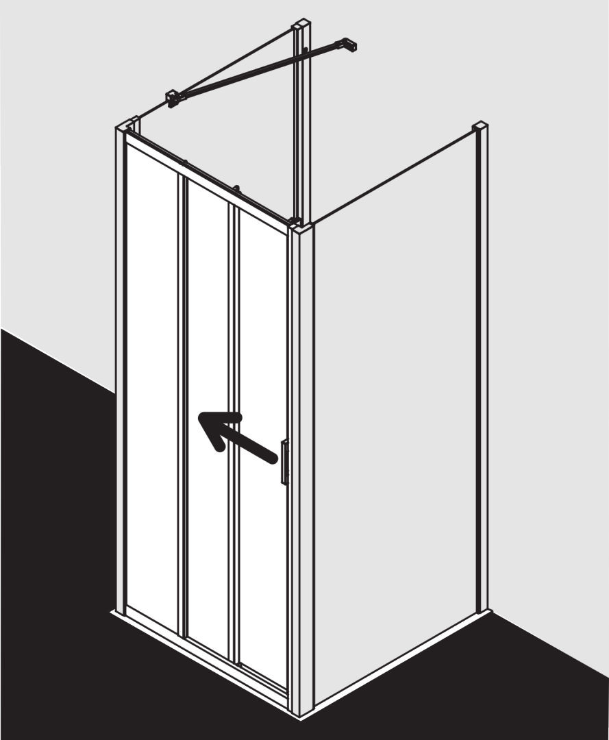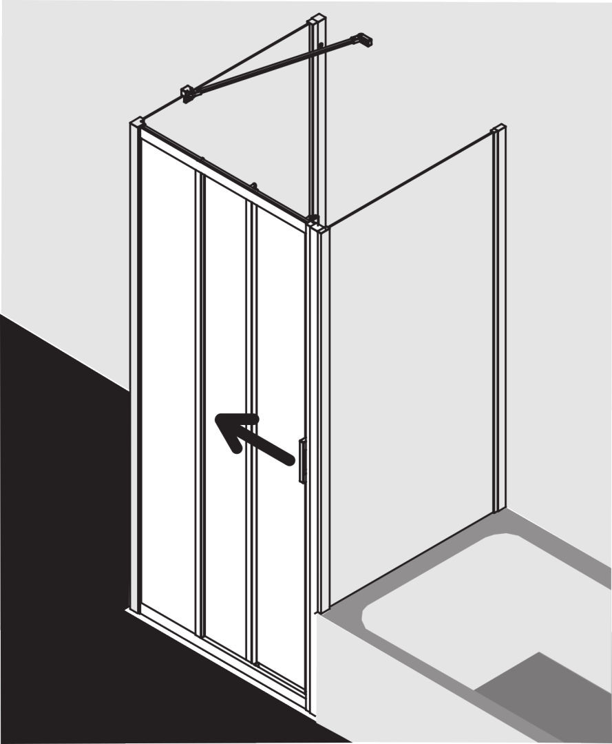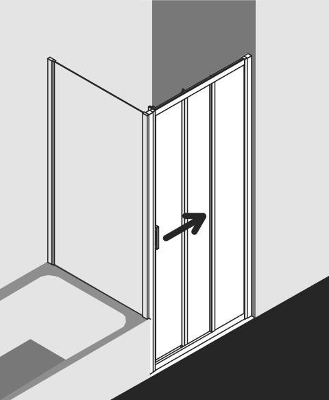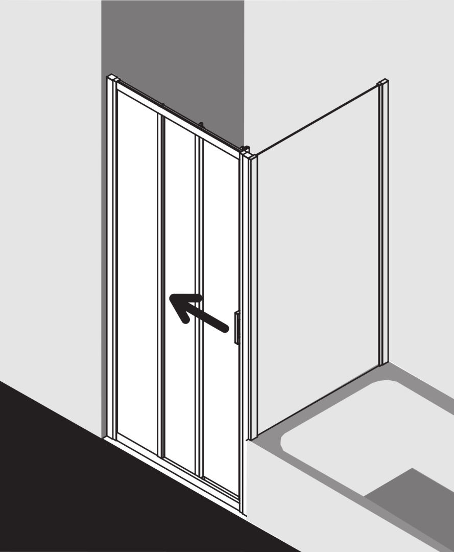 zum Einbau in einer Nische und zur Kombination mit LI TWD Seitenwand/LI TVD Seitenwand verkürzt auf Badewanne, gerahmte Tür mit zwei Gleittürsegmenten, nach einer Seite öffnend, mit einem Festfeld, Verglasung mit 4 mm Einscheiben-Sicherheitsglas nach EN 12150, optional mit Pflegeleicht-Beschichtung, Profile aus eloxiertem Aluminium, Griffe aus Metall, bei Oberfläche silber mattglanz Griffe in chrom, Verstellmöglichkeit je Wandprofil 25 mm, Gleittürsegmente mit Magnet-Aushängemechanismus zur Reinigung nach innen schwenkbar, kugelgelagerte Laufrollen, durchgehende Magnetleisten und Dichtprofile, mit Bodenprofil (Höhe 42 mm), Befestigungsmaterial, geprüft nach DIN EN 14428, Schräge waagerecht max. 5 mm, andernfalls Montage nicht möglich
