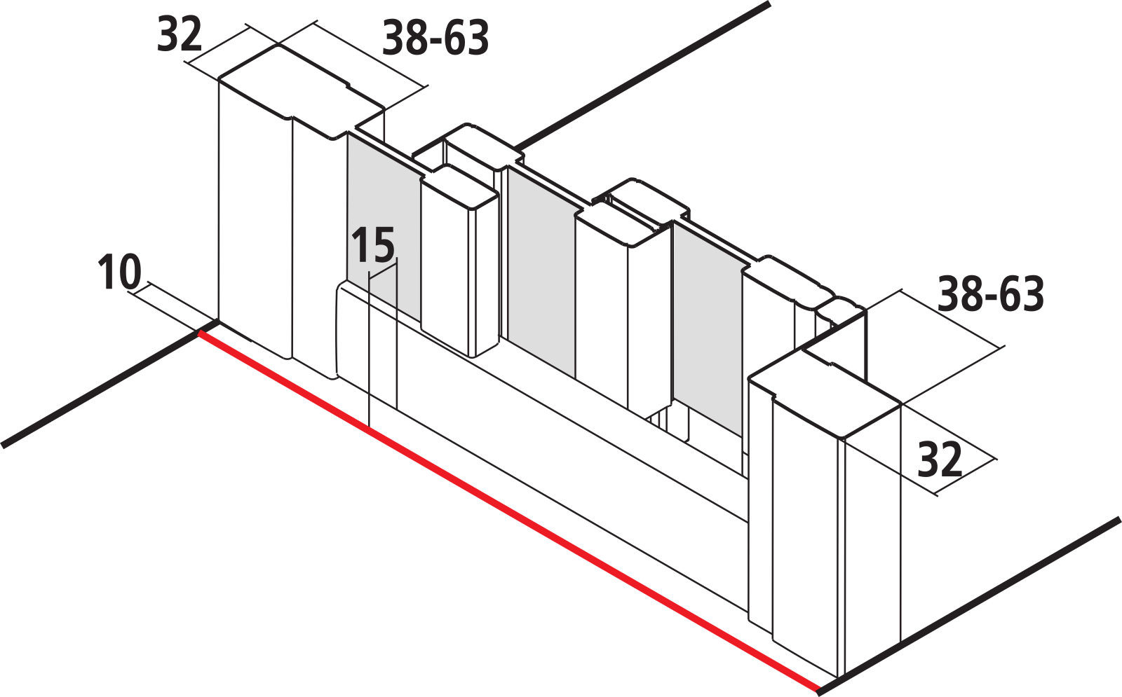 | Einbaubreite Tür für die Montage mit Seitenwand | 970 - 1020 mm |