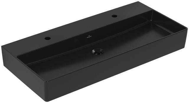 V&B Waschtisch Memento 2.0 100x47cm, 2xHahnloch, mit Überlauf, pure black C-plus VB4A22A4R7