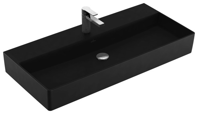 V&B Waschtisch Memento 2.0 100x47cm, Hahnloch, mit Überlauf, pure black C-plus VB4A22A5R7