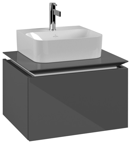 V&B Waschtischunterschrank Legato 60x38x50cm, Waschtisch mittig, Glossy Grey