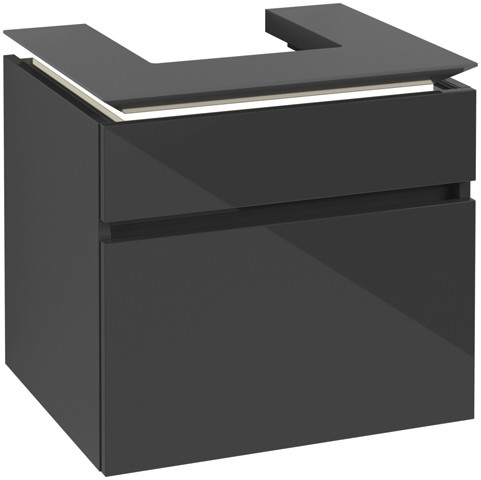V&B Waschtischunterschrank Legato 60x55x50cm, Waschtisch mittig, mit LED-Beleuchtung, Black Matt Lacquer VBB732L0PD