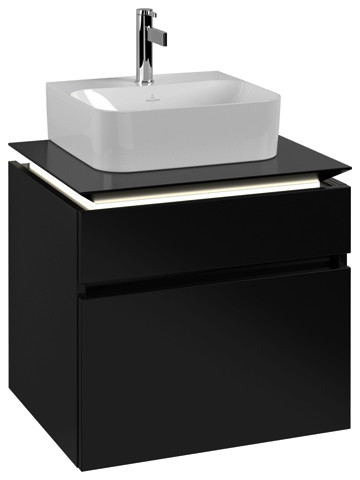 V&B Waschtischunterschrank Legato 60x55x50cm, Waschtisch mittig, mit LED-Beleuchtung, Black Matt Lacquer