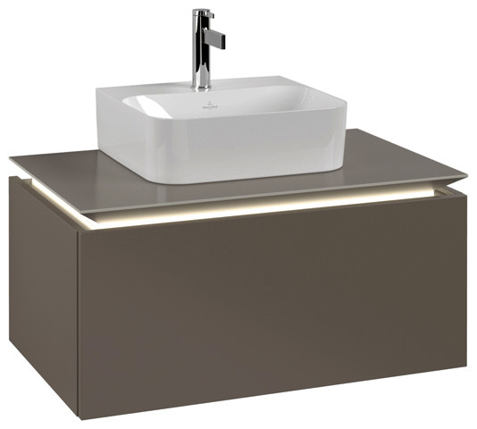 V&B Waschtischunterschrank Legato 80x38x50cm, Waschtisch mittig, mit LED-Beleuchtung, Truffle Grey