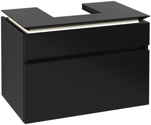 V&B Waschtischunterschrank Legato 80x55x50cm, Waschtisch mittig, mit LED-Beleuchtung, Black Matt Lacquer VBB734L0PD