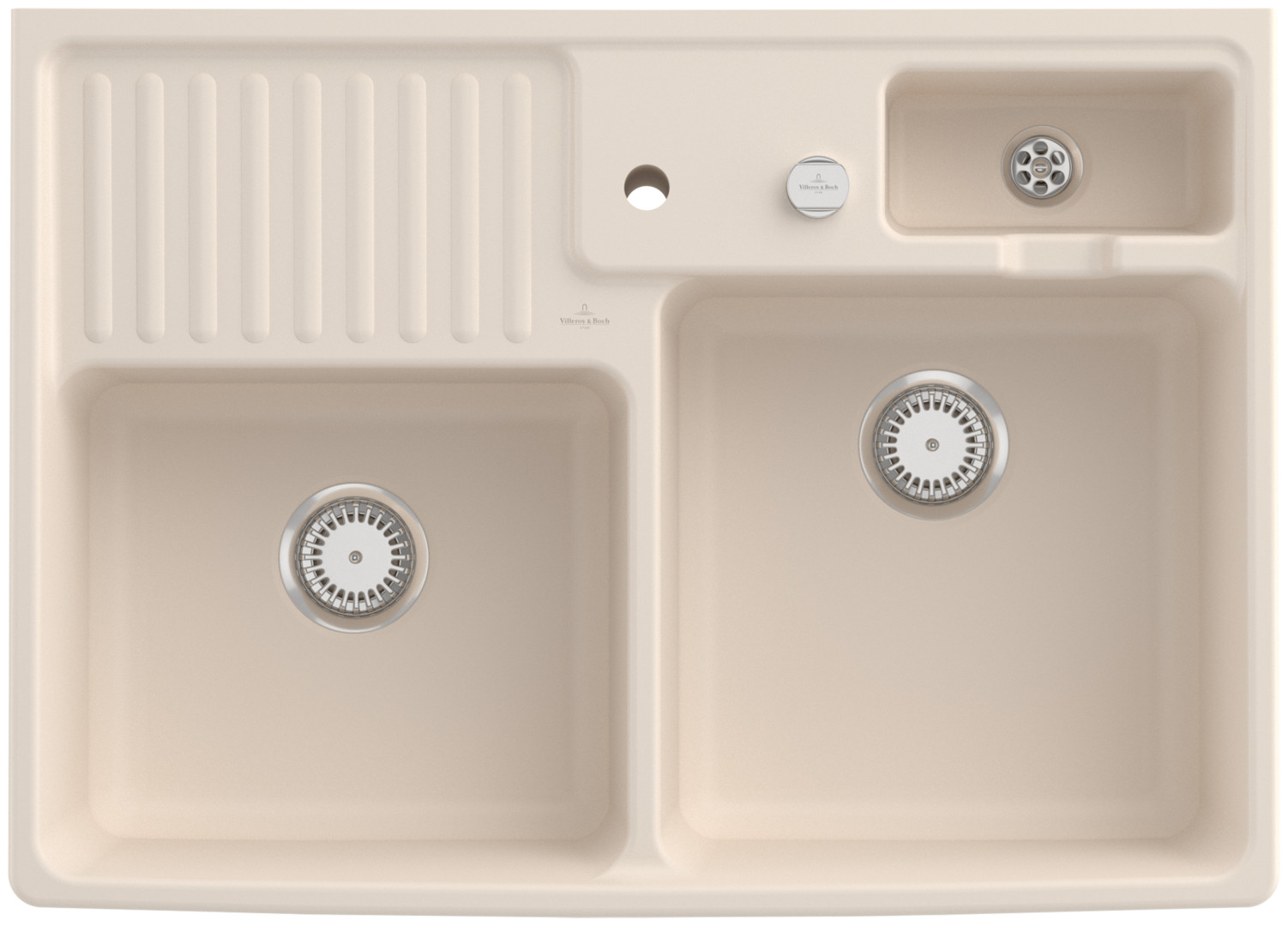 V&B Spülstein-Doppelbecken Resteschale, mit Ablaufgarnitur, Excenterbetätigung, ivory CeramicPlus