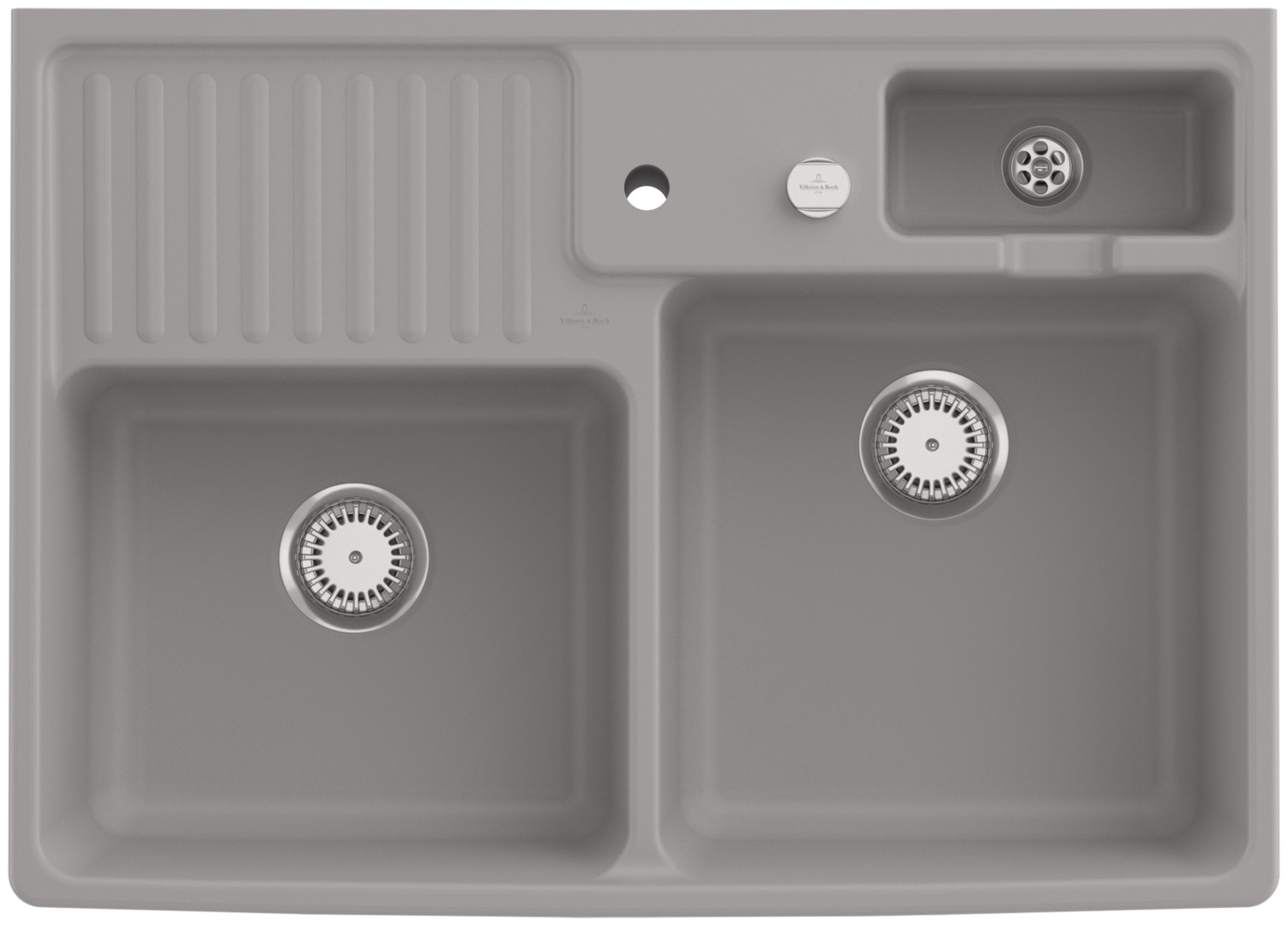 V&B Spülstein-Doppelbecken Resteschale, mit Ablaufgarnitur, Excenterbetätigung, fossil CeramicPlus