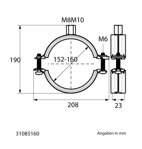 Walraven Zweischraubenschelle BIFIX G2 BUP1000 152-160 mm, M 8/10, EPDM, mit Einlage