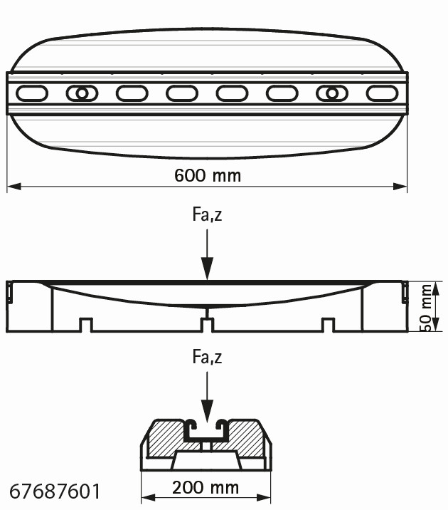 Walraven Montagefuß Ursus BUP1000 600 x 200 x 50 mm, horizontal, mt Schiene BY67687601