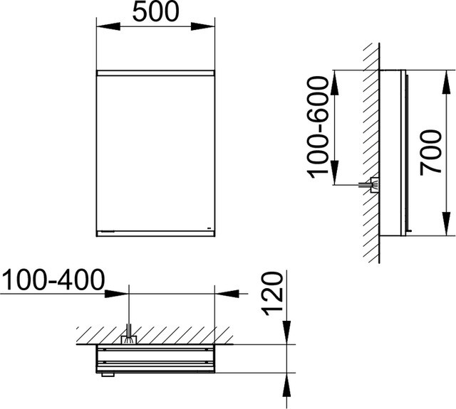 KEUCO Spiegelschrank Royal Modular 2.0 50 x 70 x 12 cm, ohne Steckdose, AP, 1-türig, Anschlag rechts 800101050000000