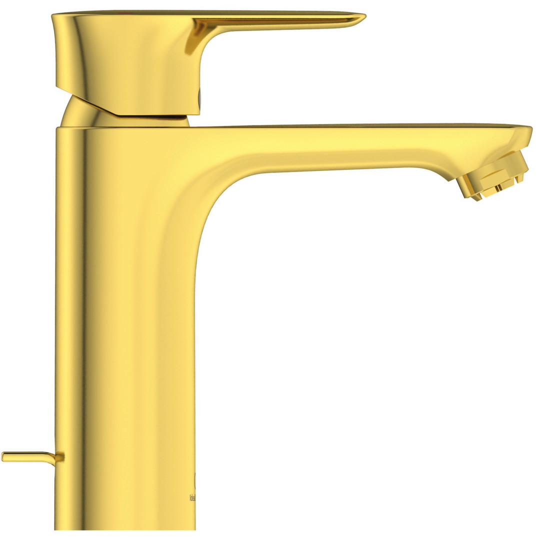 Ideal-Standard Waschtisch-Einhebelmischer Connect Air Grande 5 l/min, Ausladung 125mm, Niederdruck, mit Ablaufgarnitur, brushed gold