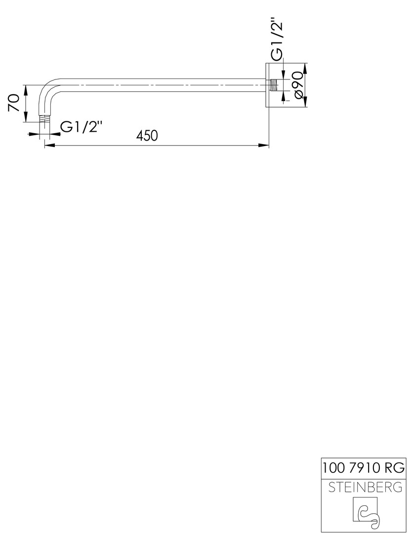 Steinberg Brausearm Serie 100 rund, Wandmontage, 450 mm, mit verstärkter Wandhalterung, chrome ST1007910