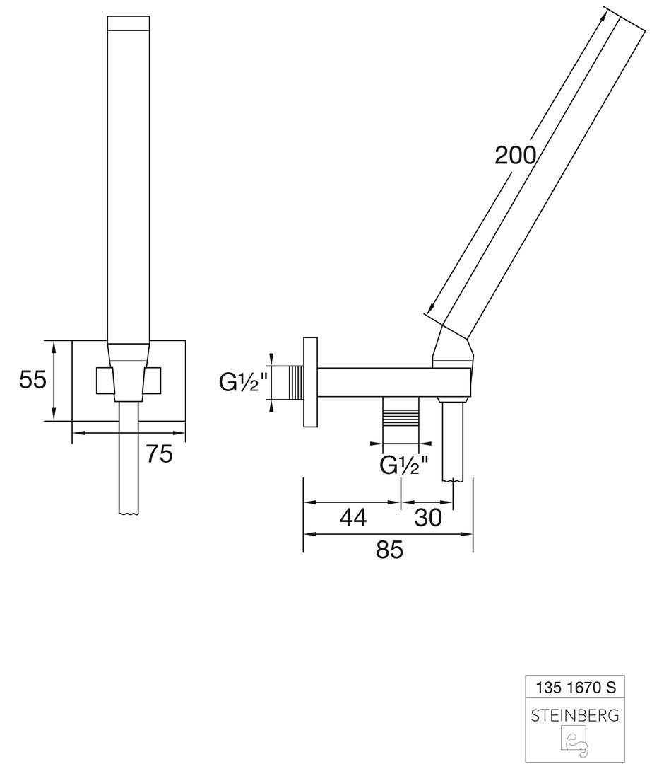 Steinberg Handbrausegarnitur Serie 135 mit Wandanschlussbogen und Brauseschlauch 1500mm, chrom ST1351670