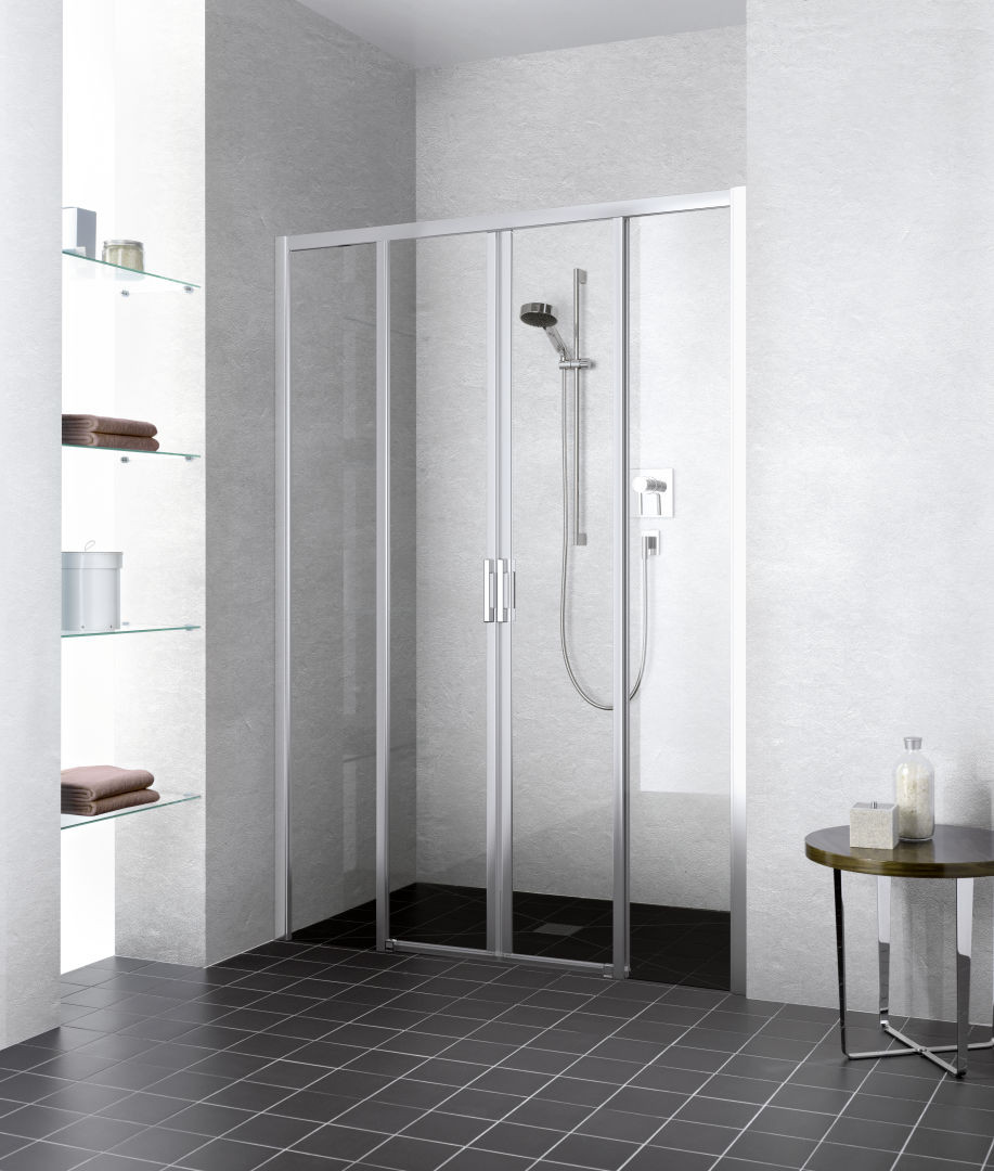 Kermi Gleittür LIGA 4-teilig bodenfrei mit Festfeldern 120 x 185 cm, silber hochglanz, ESG klar, auf Duschwanne ZKLID4B12018VAK