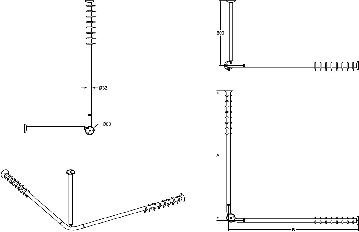 aus Aluminium mit Pulverbeschichtung, ohne Vorhang, Stangen sind kürzbar