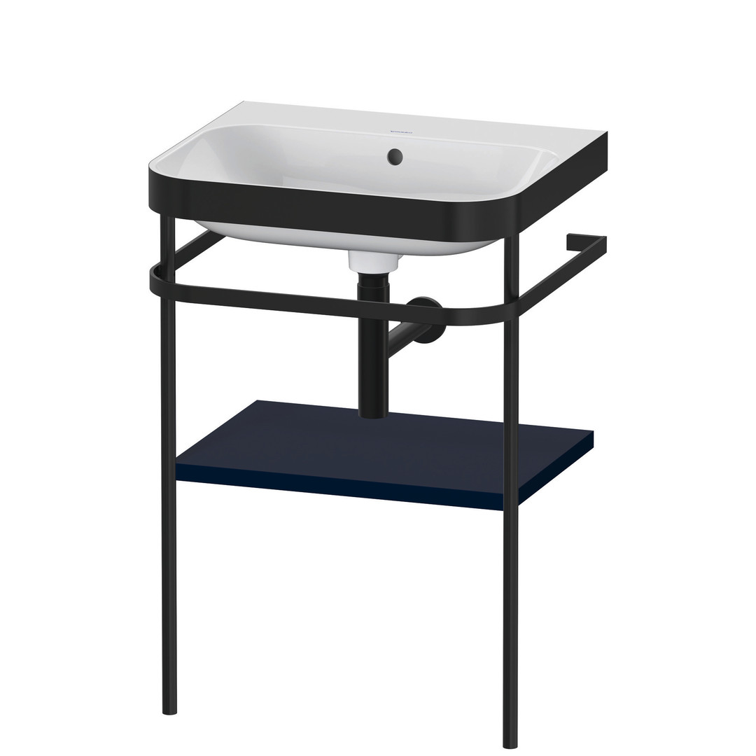 Duravit Möbelwaschtisch-Kombination Happy D.2 Plus 57,5 x 49 cm, ohne Hahnloch, nachtblau seidenmatt, mit Metallkonsole