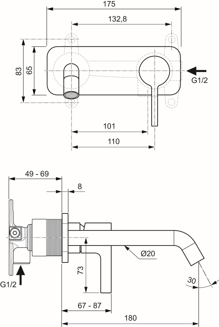 Ideal-Standard Fertigmontageset Joy für Wand-Waschtisch-Einhebelmischer, Auslauf 180 mm, Magnetic Grey ISA7380A5