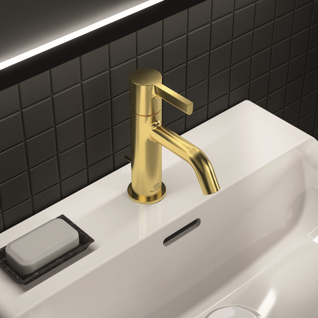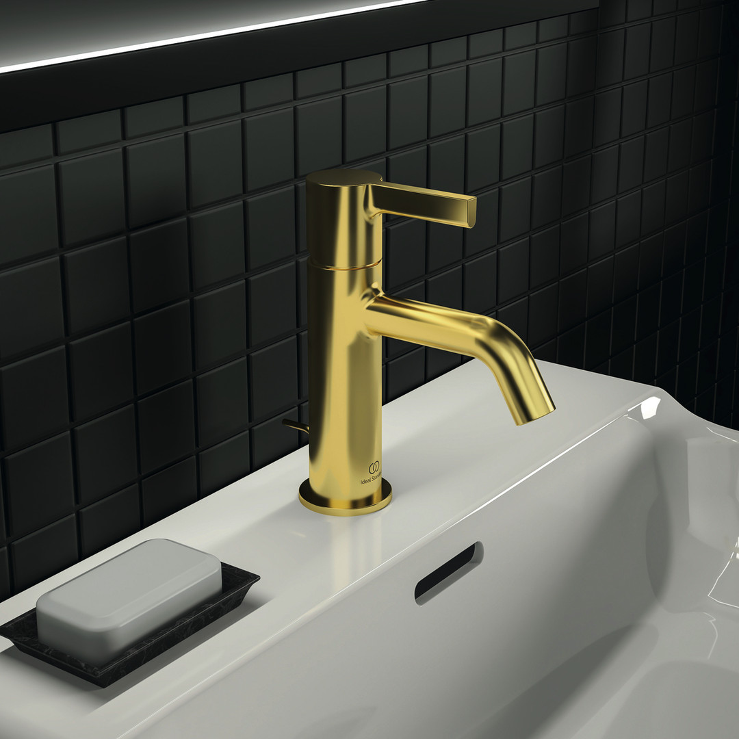 Ideal-Standard Waschtisch-Einhebelmischer Joy DN 15, Ausladung 110mm, mit Metall-Ablaufgarnitur, brushed gold ISBC775A2
