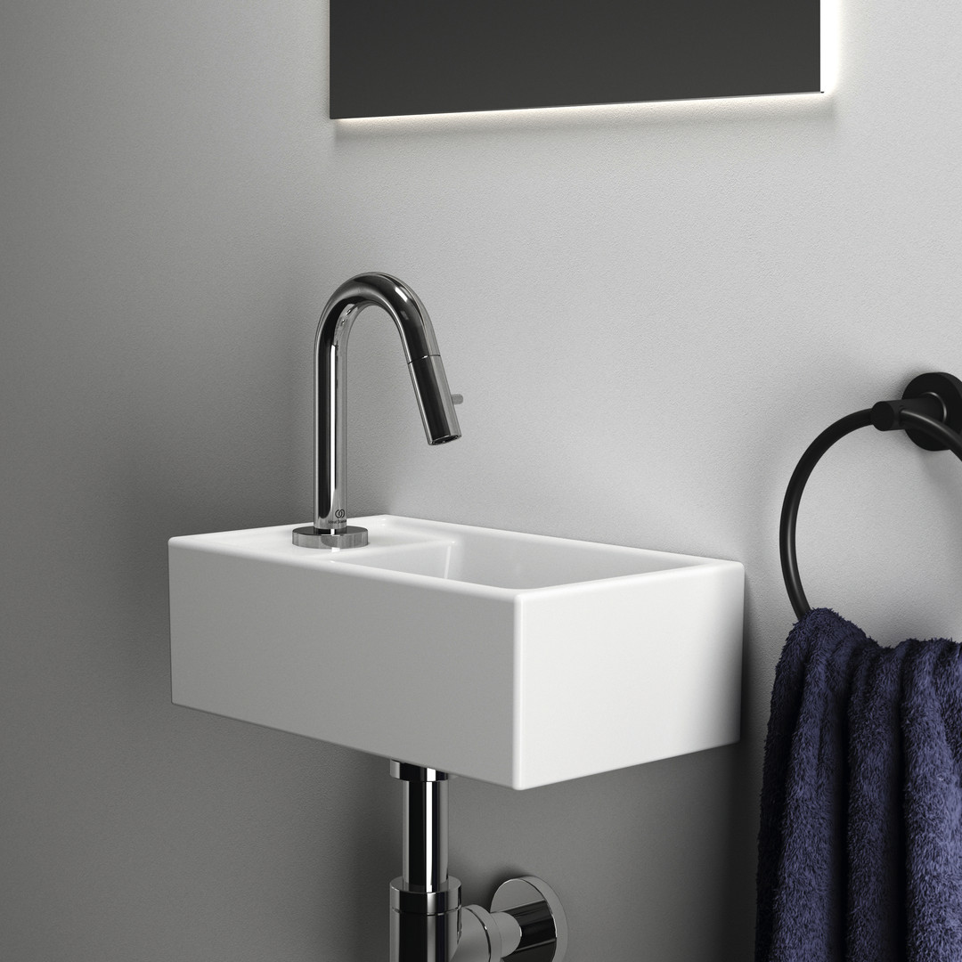 Ideal-Standard Hand-Waschbecken i.life S 37x21x12cm, mit Hahnloch links, ohne Überlauf, weiß ISE211301