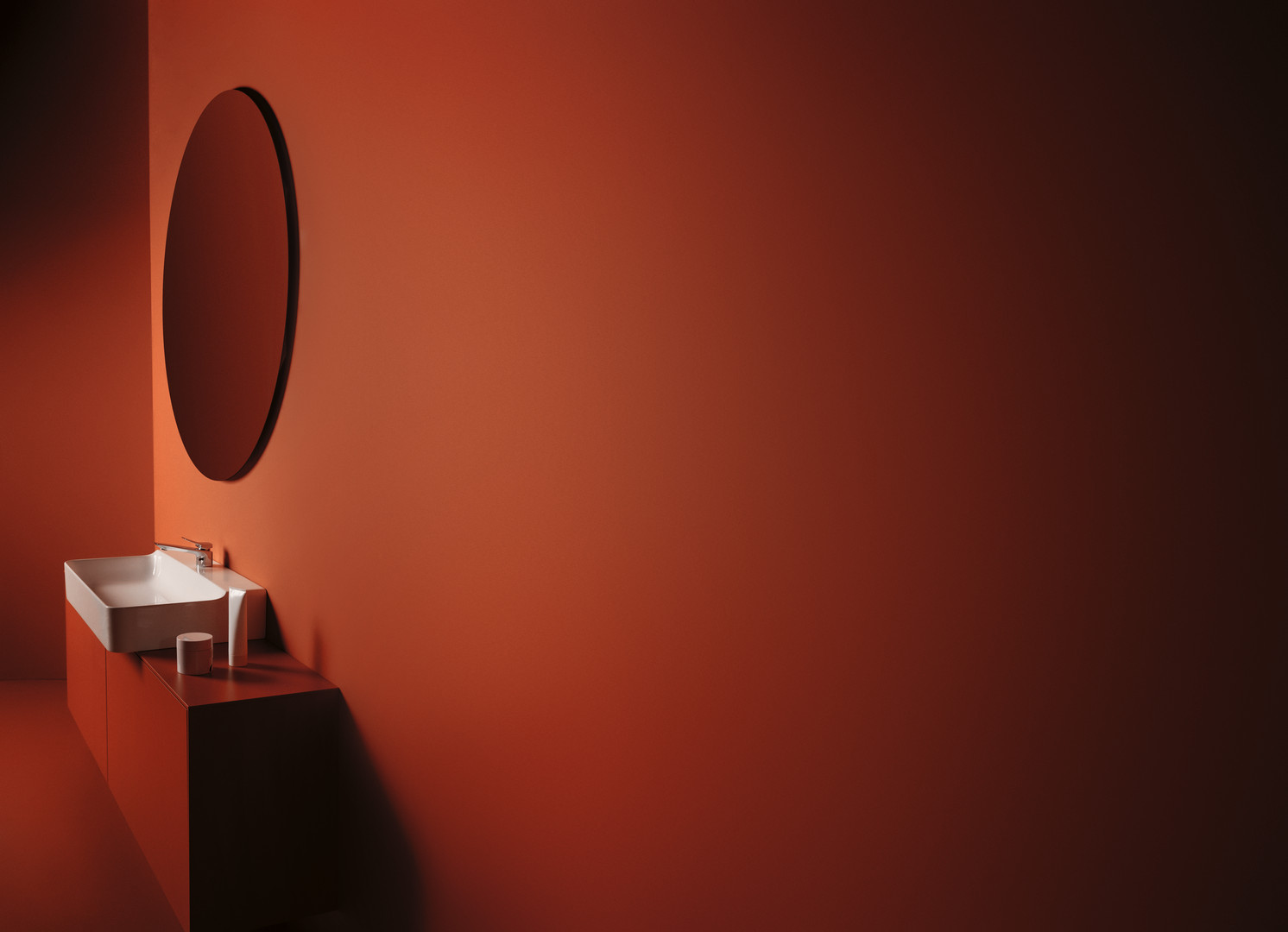 Feinfeuerton, Hahnloch mittig durchgestochen, Überlauf geschlitzt, Befestigungsart Stockschrauben, Norm DIN EN 14688 CL 25, DIN EN 31