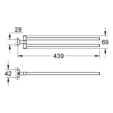 GROHE Handtuchhalter Essentials Cube 43,9cm, 2-armig, schwenkbar, verdeckte Befestigung, chrom FG40624001