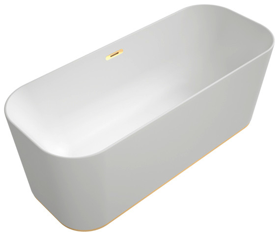 V&B Rechteck-Freistehwanne Finion Ausstattung Gold Quaryl, Push-to-Open-Ventil, Überlauf, Wasserzulauf, weiß 177FIN7N300V401