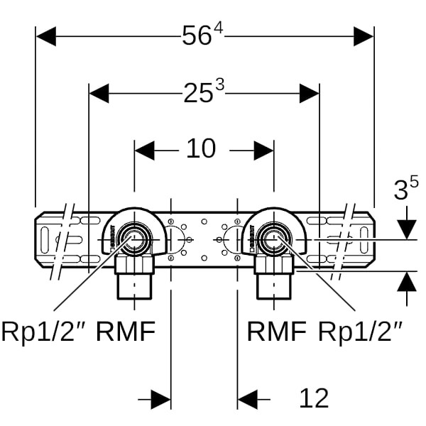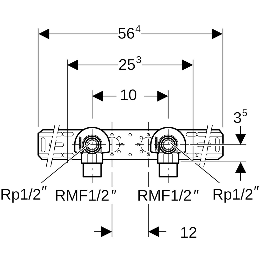 Geberit Anschlusswinkel 90Grad, 2-fach mit Außengewinde MF 1/2", R 1/2 x Rp 1/2, 5,2 cm GE632855002