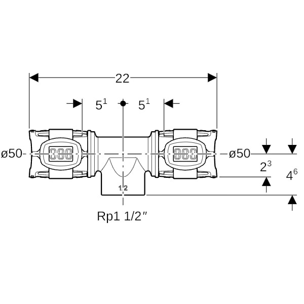 Geberit T-Stück FlowFit 50 mm x Rp 1 1/2 x 50 mm, mit Innengewinde, Rotguss