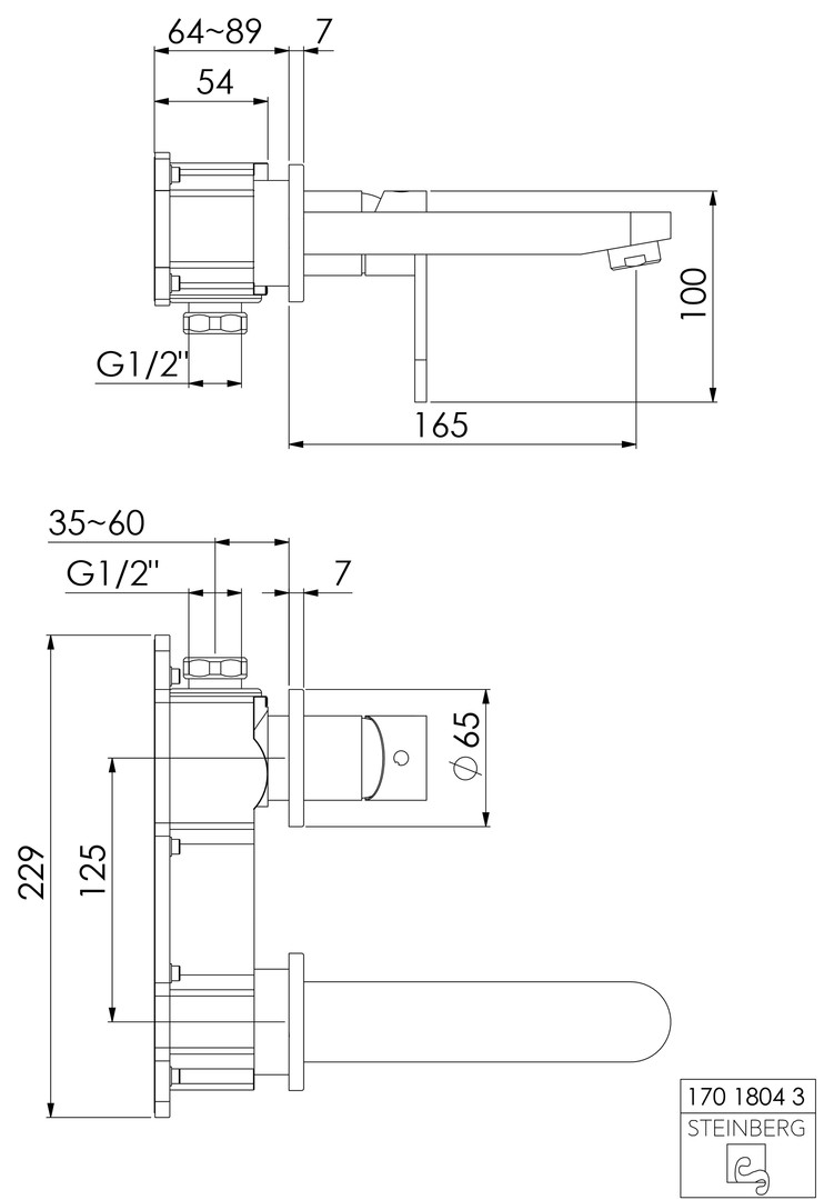 Steinberg Fertigmontageset Serie 170 Ausladung 165 mm, Waschtisch-Wand-Einhebelmischer, chrom