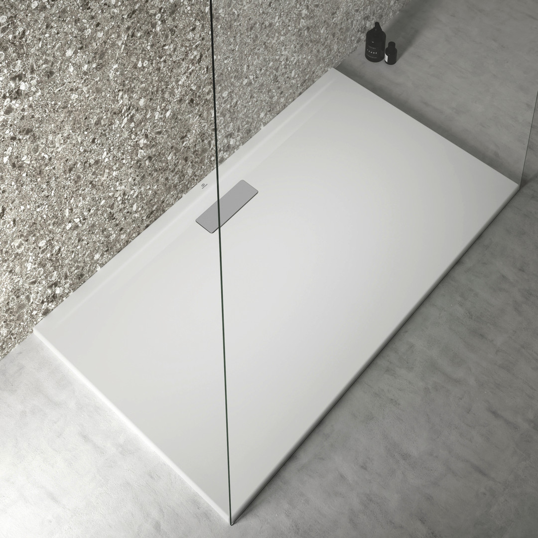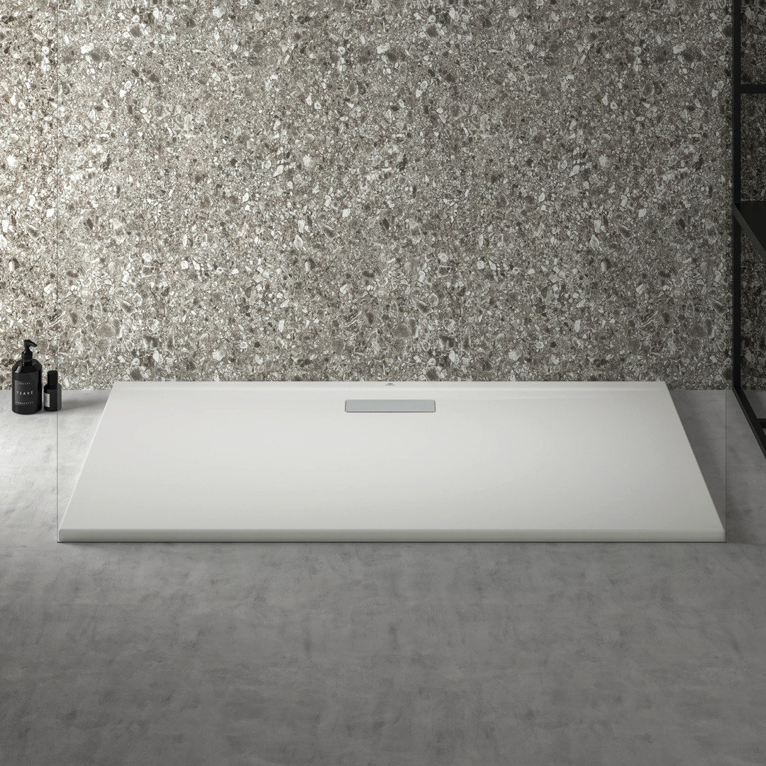 Ideal-Standard Rechteck-Brausewanne Ultra Flat New Ablaufgarnitur mit Abdeckung, 140 x 80 x 2,5 cm, Seidenweiß