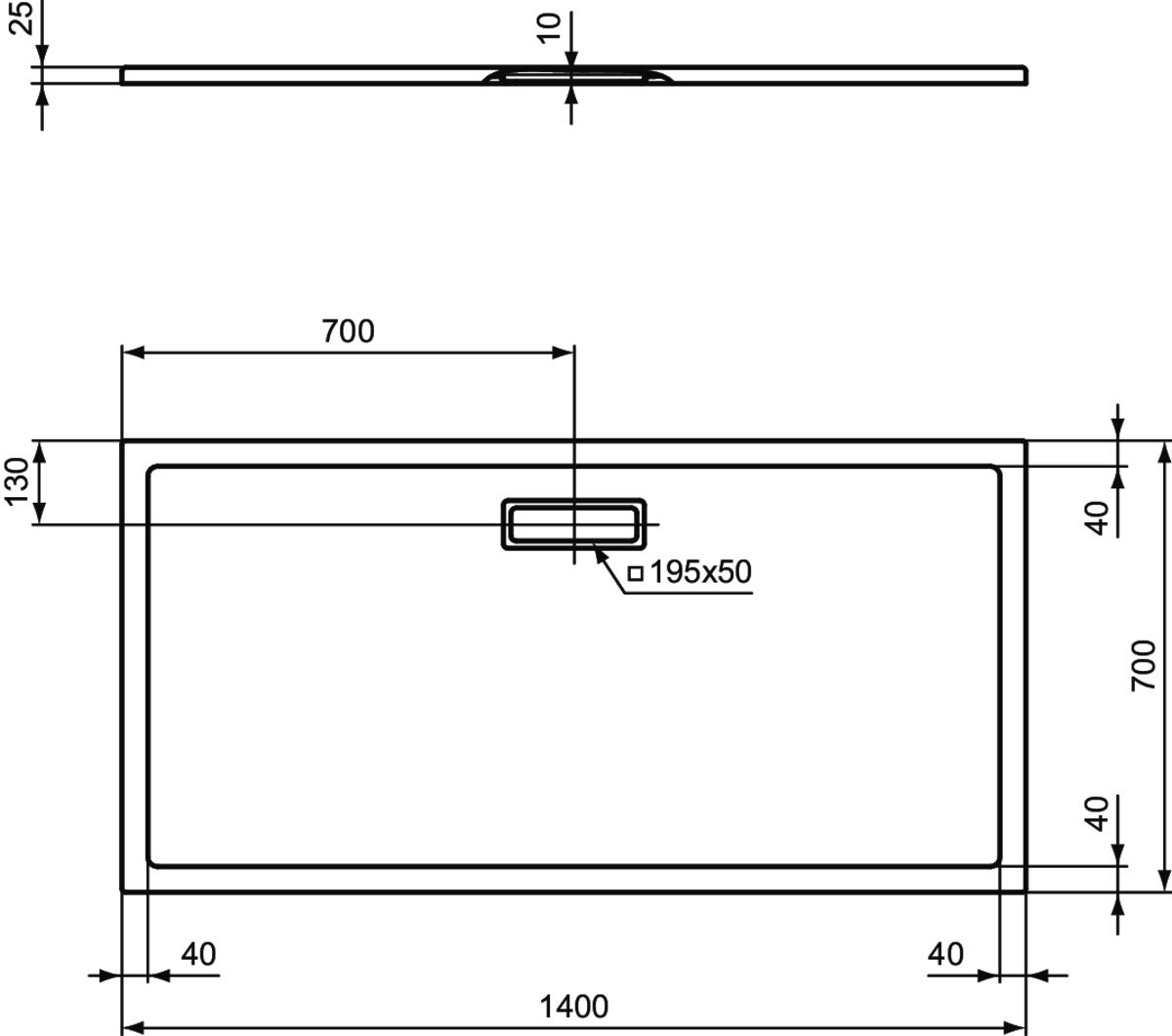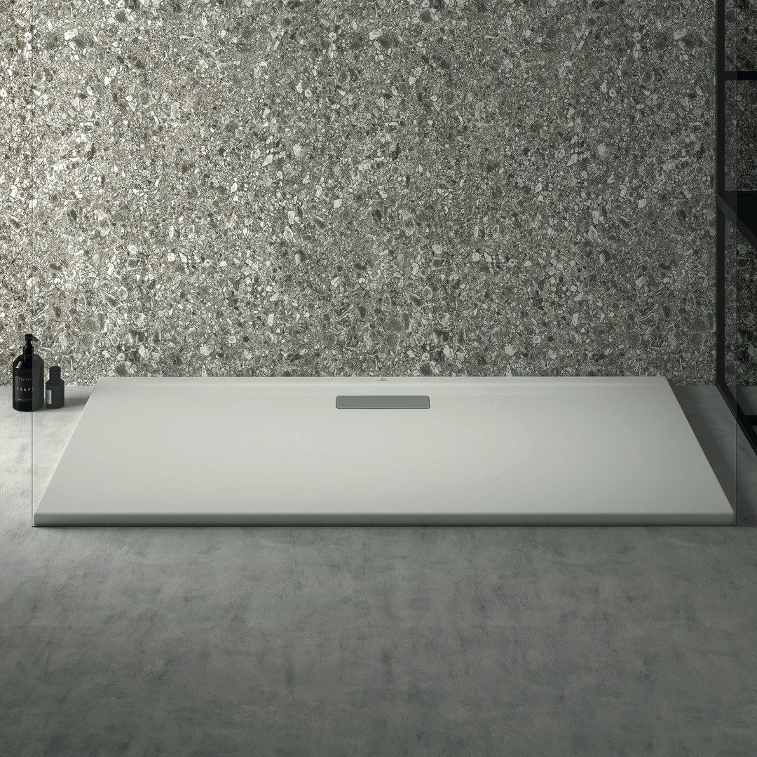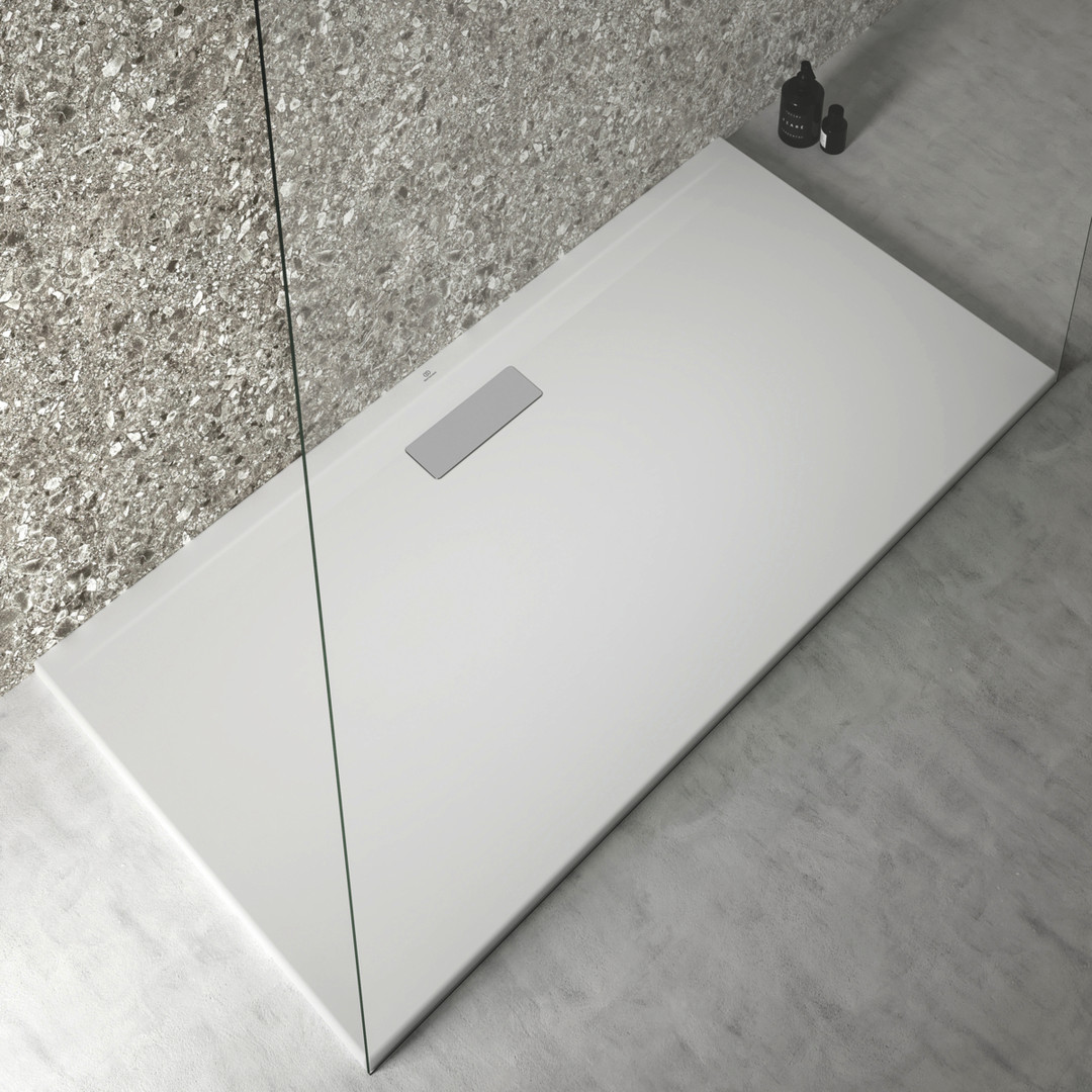 Ideal-Standard Rechteck-Brausewanne Ultra Flat New Ablaufgarnitur mit Abdeckung, 140 x 70 x 2,5 cm, Seidenweiß