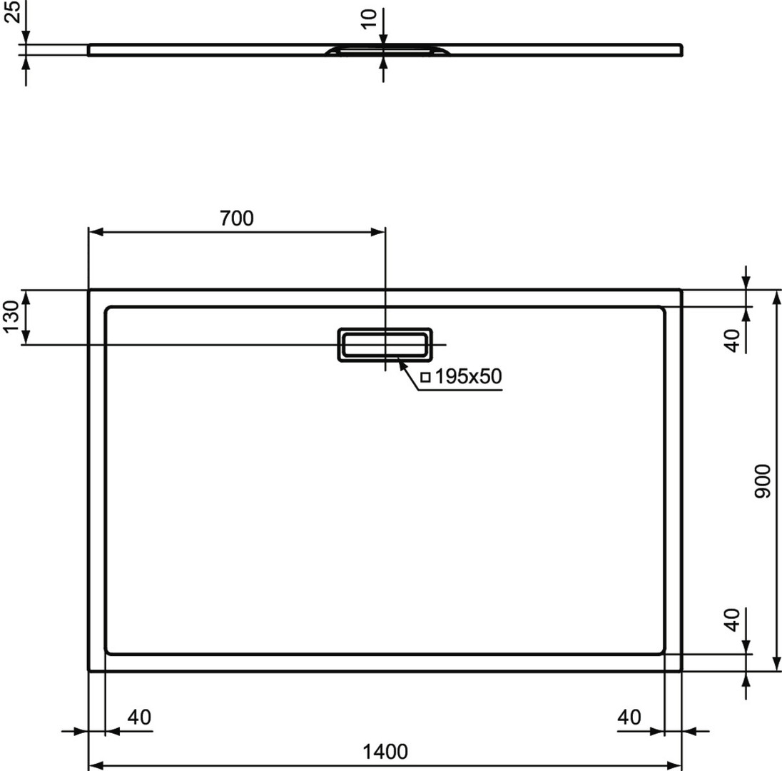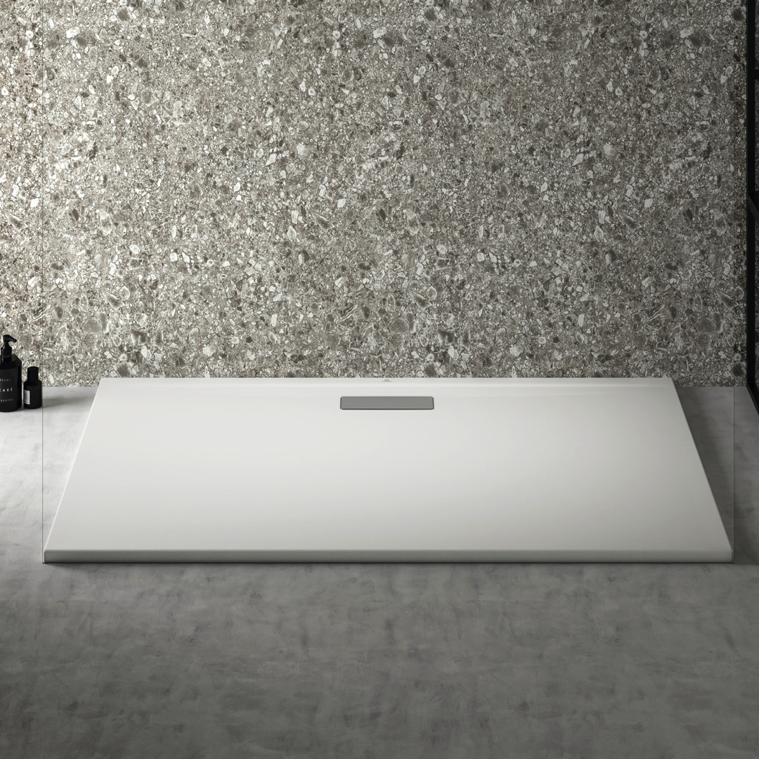 Ideal-Standard Rechteck-Brausewanne Ultra Flat New Ablaufgarnitur mit Abdeckung, 140 x 90 x 2,5 cm, Seidenweiß