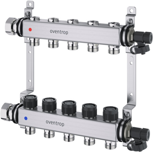 Oventrop Heizkreis-Verteiler Multidis SF 5 Kreise, für thermostatische und elektronische Regelung, Edelstahl OV1406555