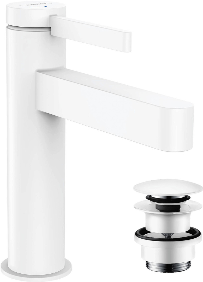 hansgrohe Waschtisch-Einhebelmischer Finoris CoolStart, Ausladung 139mm, mit Push-Open-Ablaufgarnitur, mattweiß HG76024700