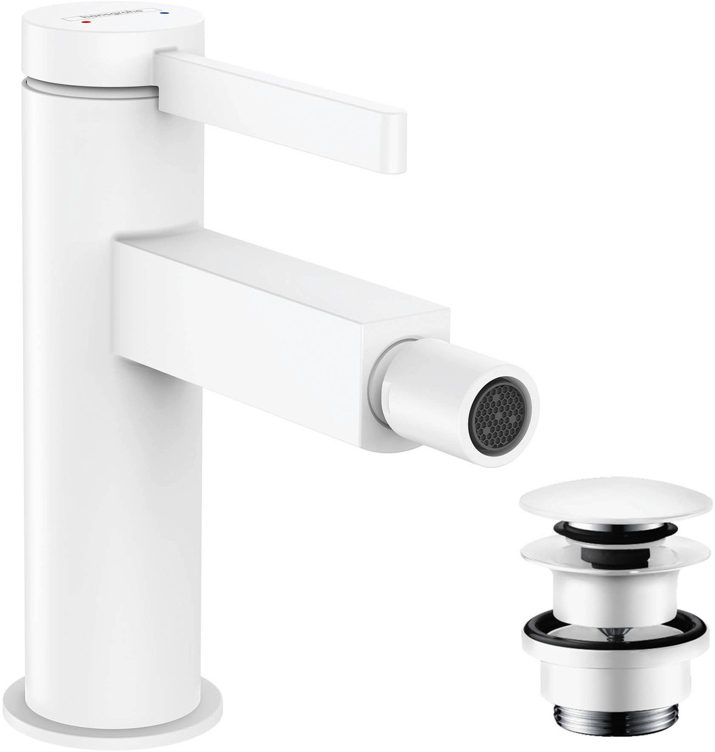 hansgrohe Bidet-Einhebelmischer Finoris mit Push-Open-Ablaufgarnitur, mattweiß
