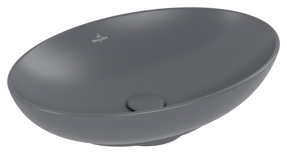 V&B Aufsatz-Waschtisch Loop & Friends 56 x 38 cm, mit Überlauf, graphite C-plus, oval, ohne Hahnlochbank