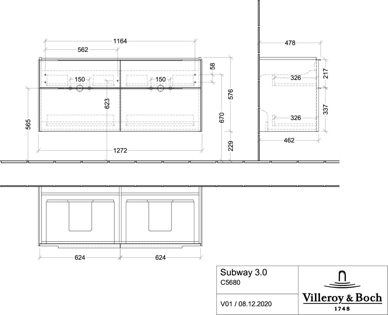 V&B Waschtisch-Unterschrank Subway 3.0 127,2x56,6x47,8cm, ohne LED/Griff Aluminium glänzend, black oak VBC56800AB