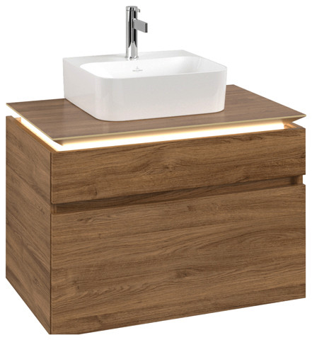 V&B Waschtischunterschrank Legato 80x55x50cm, Waschtisch mittig, mit LED-Beleuchtung, Kansas Oak