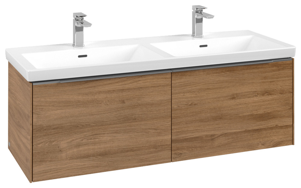 V&B Waschtisch-Unterschrank Subway 3.0 127,2x42,9x47,8cm, ohne LED/Griff Aluminium glänzend, kansas oak VBC56700RH
