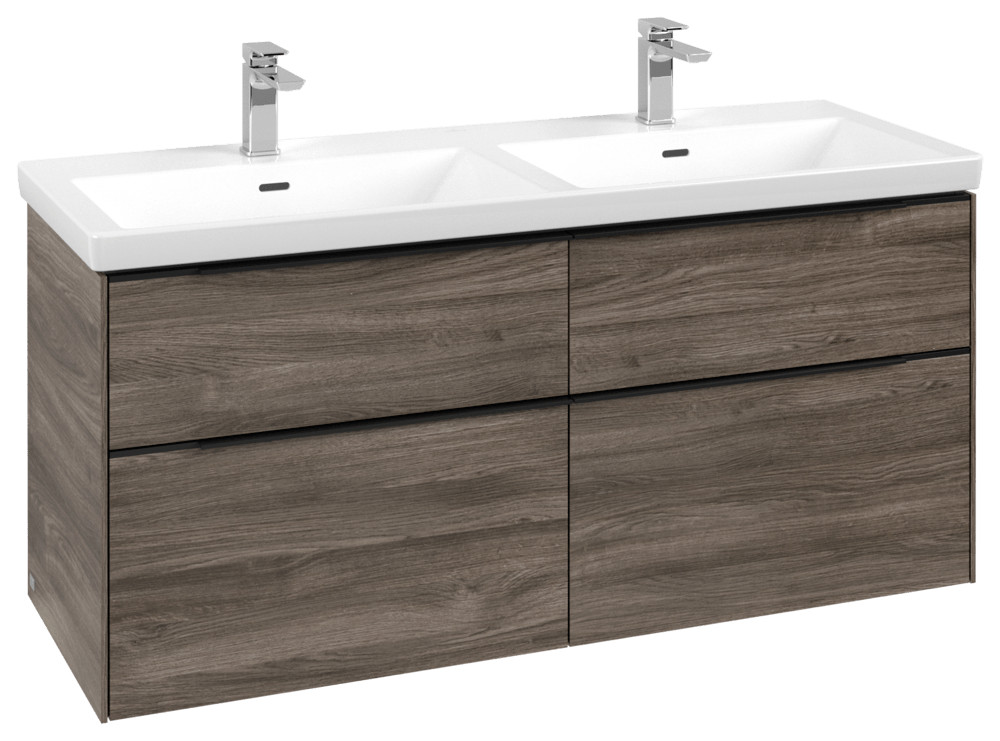 V&B Waschtisch-Unterschrank Subway 3.0 127,2x56,6x47,8cm, mit LED/Griff Volcano black, stone oak