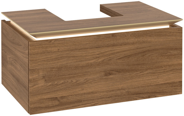 V&B Waschtischunterschrank Legato 80x38x50cm, Waschtisch mittig, mit LED-Beleuchtung, Kansas Oak