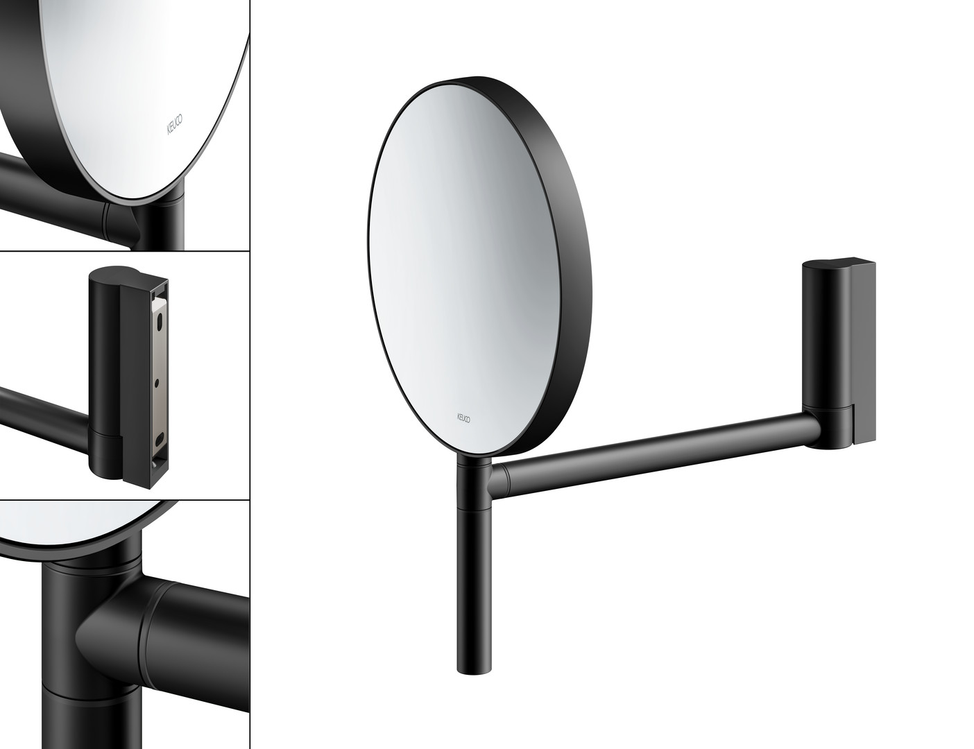 KEUCO Kosmetikspiegel Plan d= 193mm, unbeleuchtet, Schwenkarm, schwarz matt
