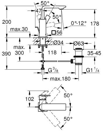 Aufbauhöhe Unterkante Hahnauslass 178 mm