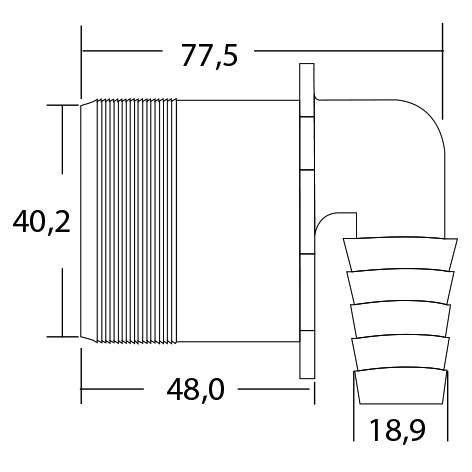 HAAS Schlauchanschluss für DN 40, grau, 90Grad, für Schläuche 18-23mm