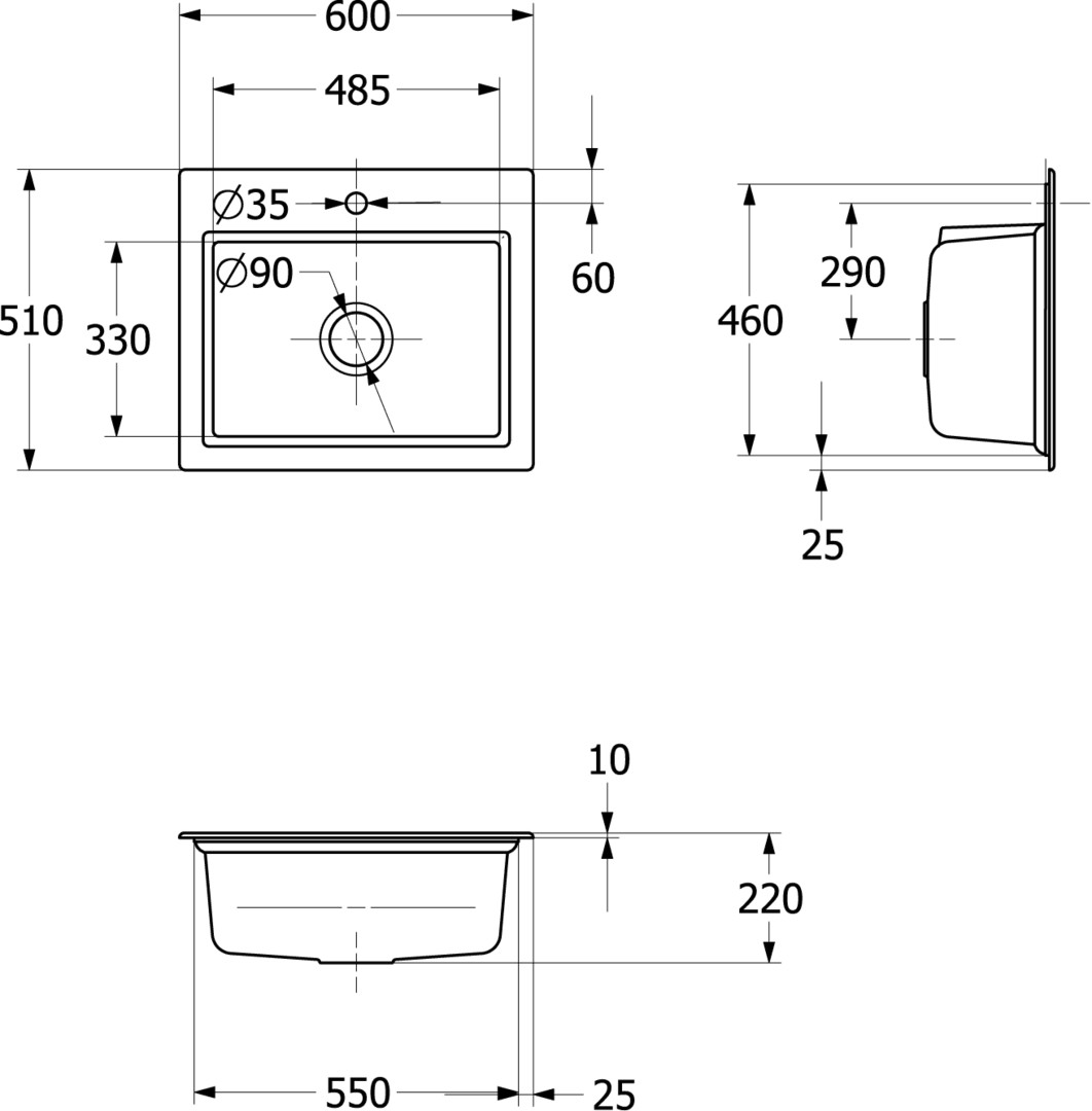 V&B Spüle Subway Style 60S Spülbecken, stone white CeramicPlus VB336600RW