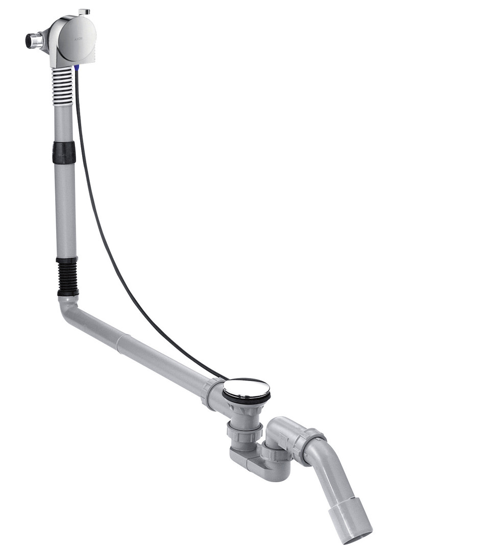 für Sonderwannen, bestehend aus Grundkörper, Wannensiphon, Grundkörper, Fertigset, mit Faltenbalg für Wannen mit schrägem Wannenrand, Bowdenzuglänge 780 mm, Wasseranschluss Zulaufschlauch links, DN 20