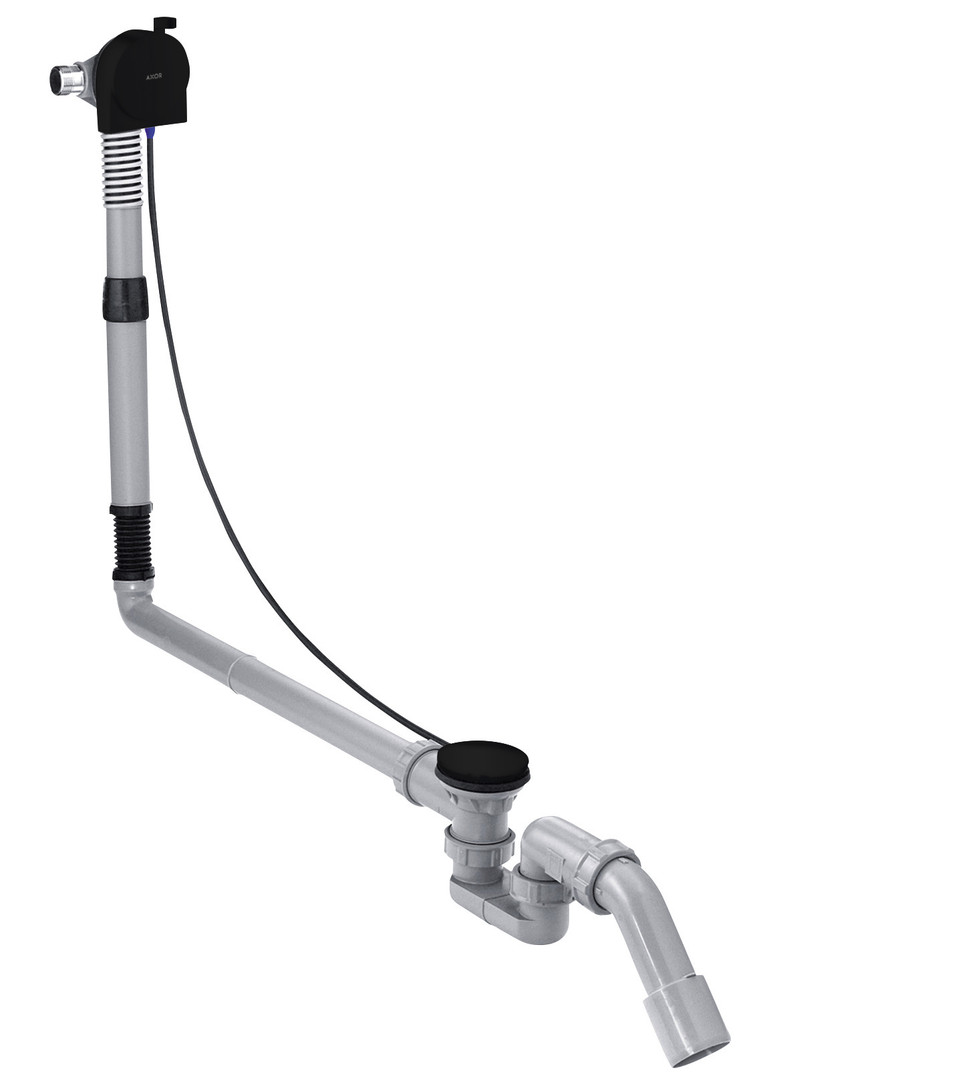 für Sonderwannen, bestehend aus Grundkörper, Wannensiphon, Grundkörper, Fertigset, mit Faltenbalg für Wannen mit schrägem Wannenrand, Bowdenzuglänge 780 mm, Wasseranschluss Zulaufschlauch links, DN 20