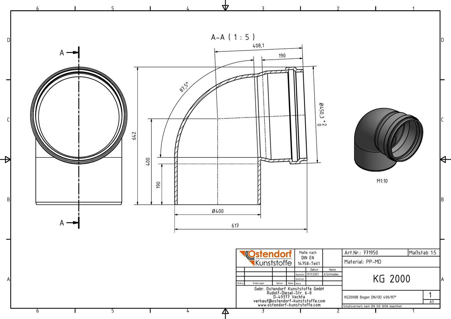 Ostendorf KG2000 Bogen B DN/OD 400, 87,5Grad