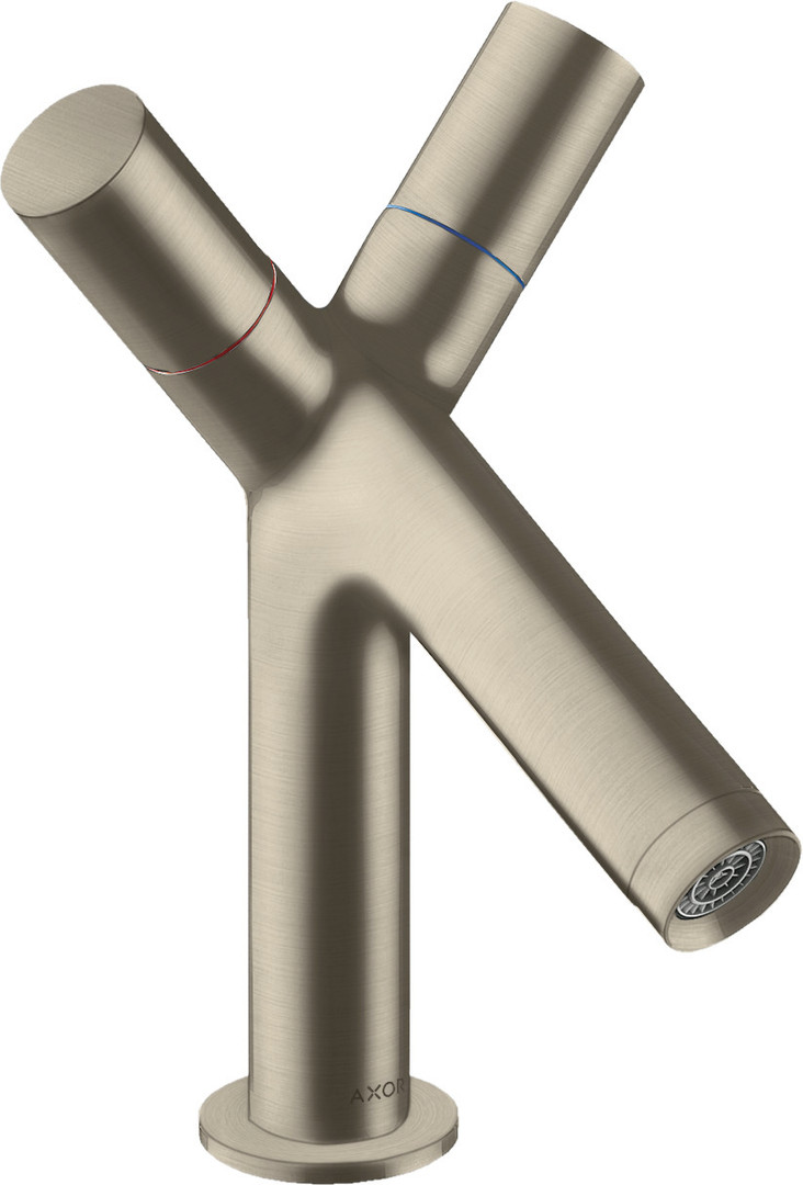 hansgrohe Zweigriff-Waschtisch-Armatur 80 Axor Starck Ausladung 105mm, mit Hebelgriff, Zugstangen-Ablaufgarnitur, brushed nickel