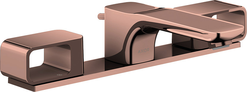 hansgrohe 3-Loch-Waschtischarmatur 50 Axor Urquiola Ausladung 180mm, mit Zugstangen-Ablaufgarnitur, Platte, polished red gold
